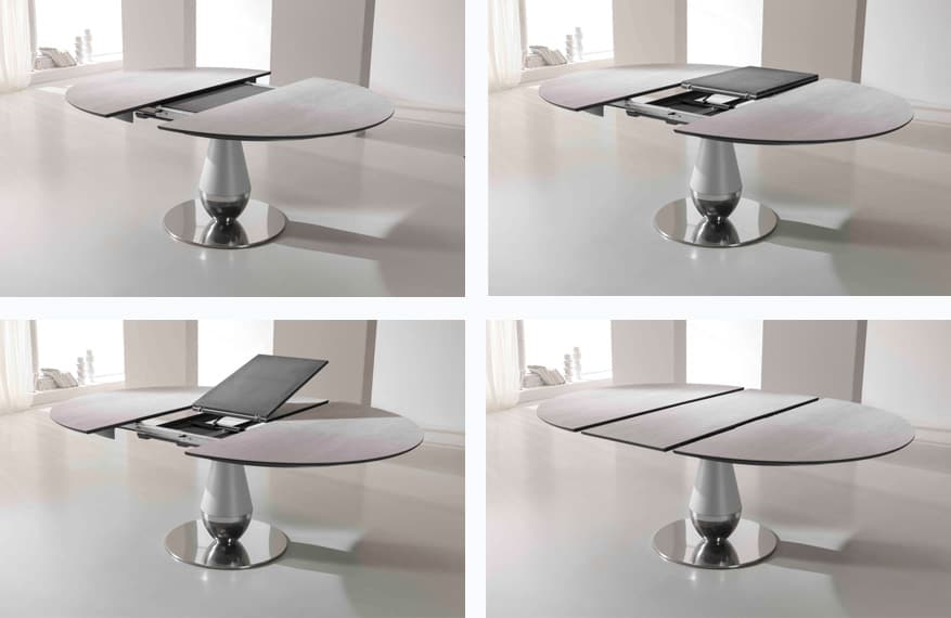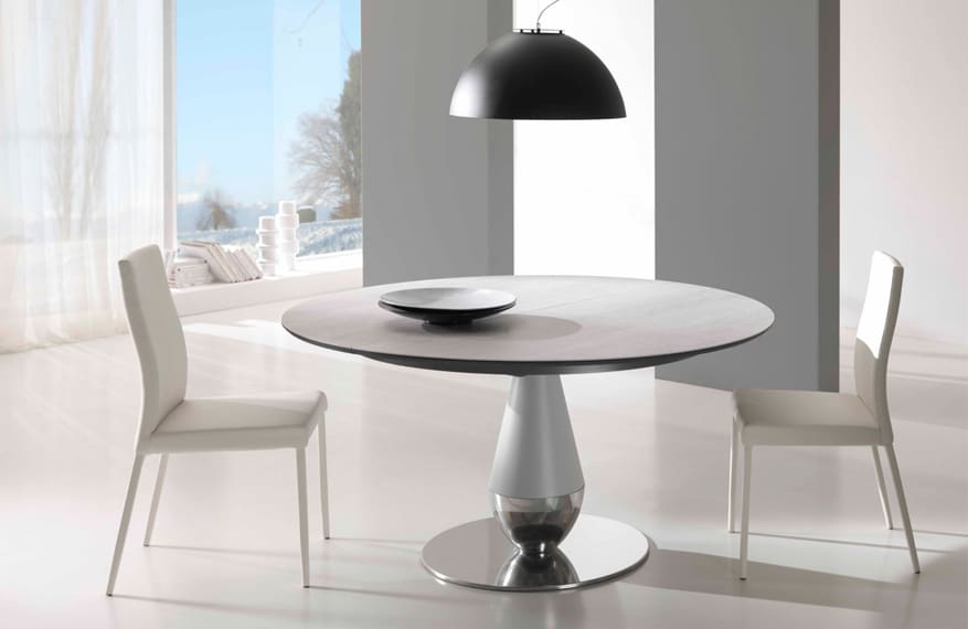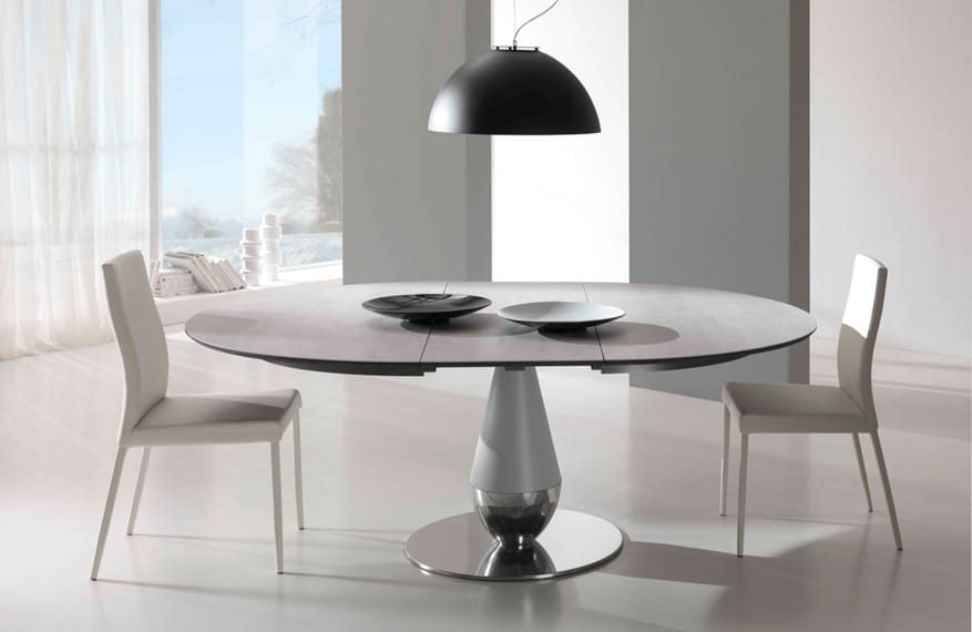 שולחן אוכל מודרני מתוצרת איטליה עגול או אובלי בגודל קבוע או עם אופציית פתיחה.