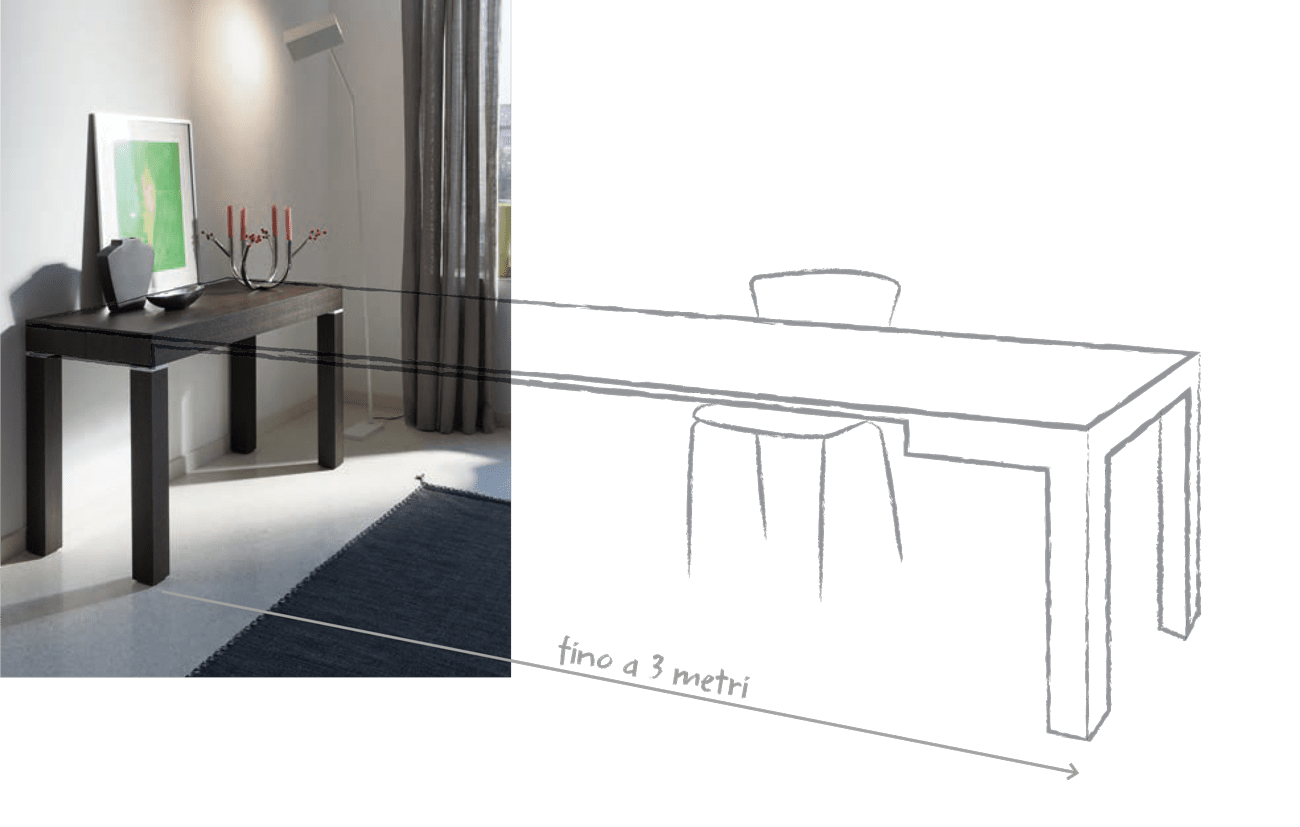 קונסולה נפתחת של גאמה ליין תוצרת איטליה דגם PQR היכולה להפתח עד 3 מטר. הקונסולה פרקטית מאוד לאירוח וגם כקונסולה לכניסה לבית. עשויה עץ איכותי עם גימורים מדוייקים ומנגנון פתיחה קל לשימוש. העיצוב של הקונסולה הוא מינימליסטי ומותאם בעצובו וצבעו למגוון רהיטים רחב ויכול להיות רהיט משלים לעיצוב הבית.